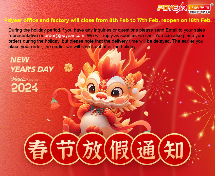 Pdyear office and factory will close from 8th Feb to 17th Feb, reopen on 18th Feb.